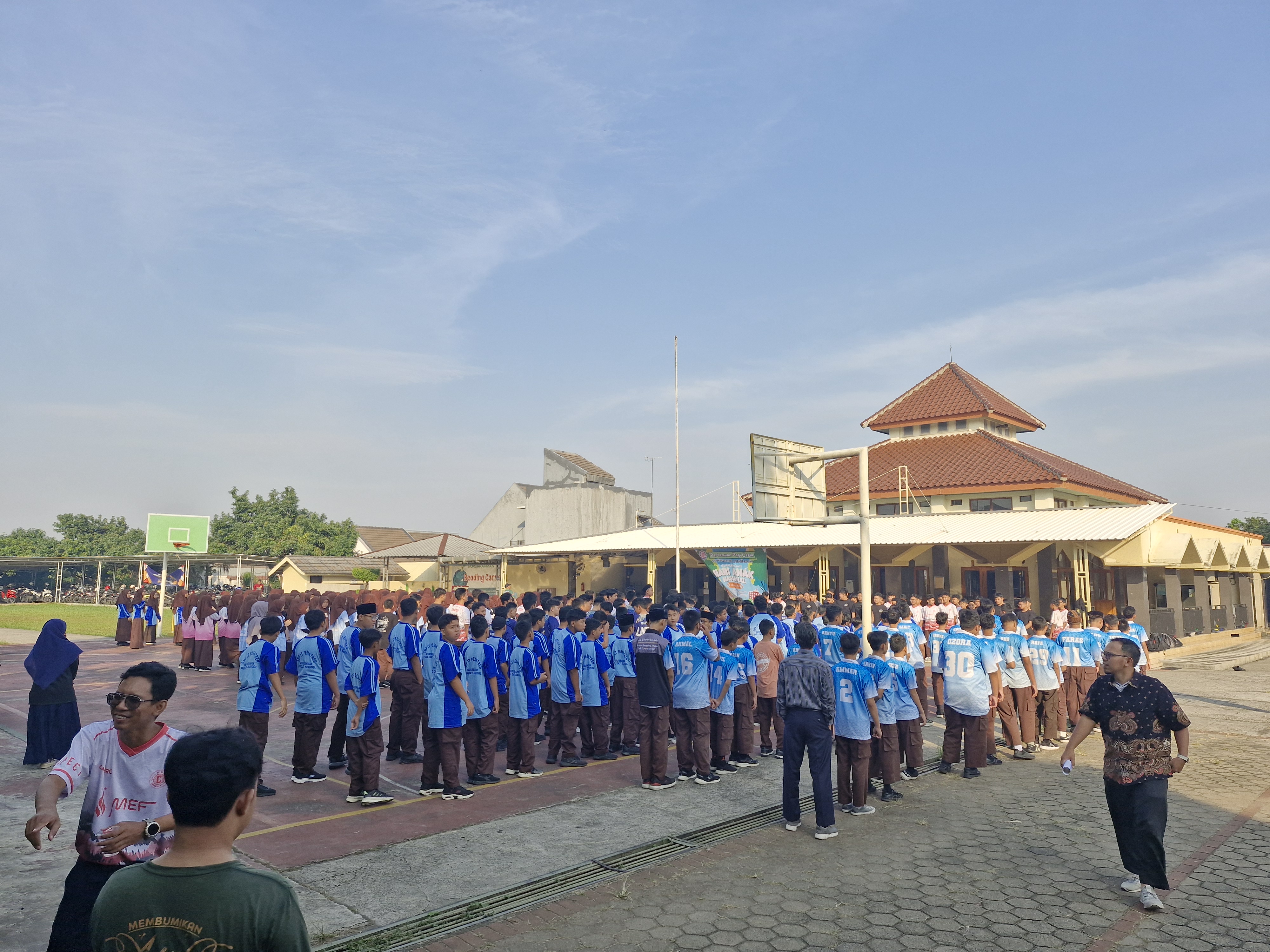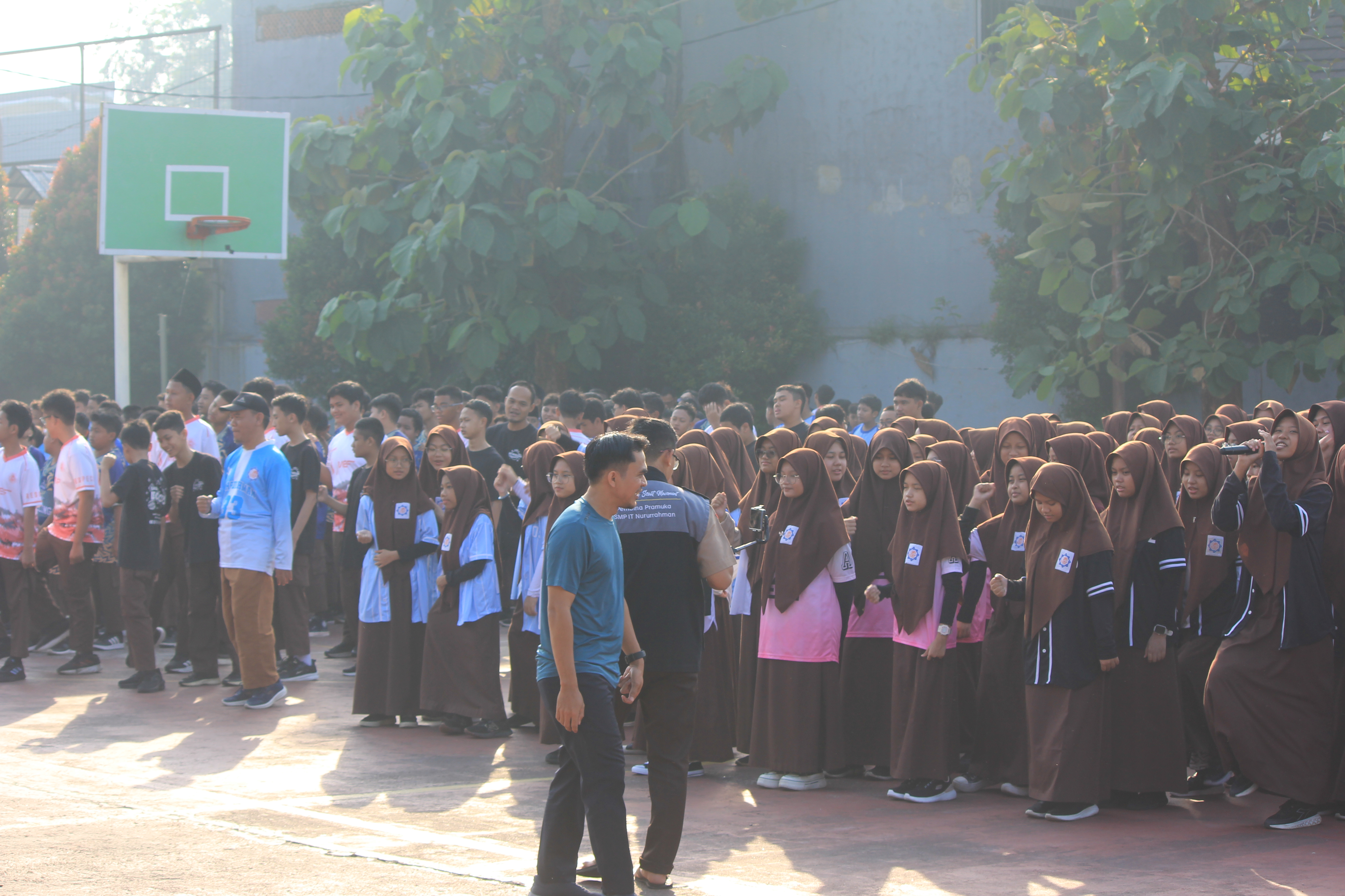 Suasana cerah dan penuh semangat menyelimuti halaman SMPIT Nururrahman sejak pagi hari. Ratusan siswa berseragam olahraga tampak berkumpul dengan wajah-wajah ceria. Mereka tidak sedang menghadapi ujian atau pelajaran seperti biasa, melainkan mengikuti kegiatan “Pertemuan Pagi Ceria” dalam rangka memperingati Hari Anak Nasional (HAN) 2025.
